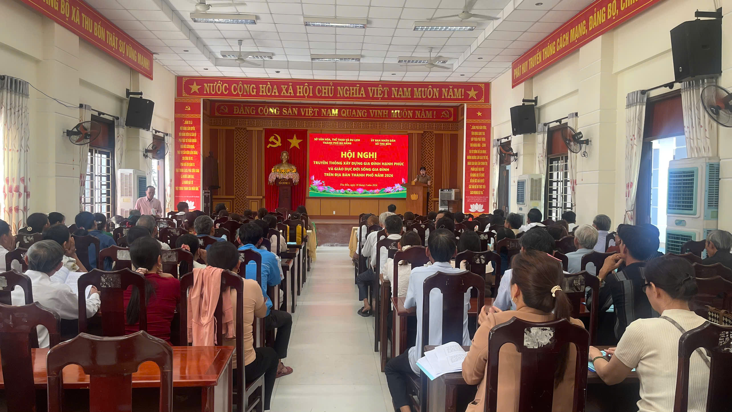 Chiều ngày 18/3, tại hội trường UBND xã, Sở Văn hóa, Thể thao và du lịch phối hợp với UBND xã Thu Bồn tổ chức Hội nghị truyền thông về xây dựng gia đình hạnh phúc và giáo dục đời sống gia đình hưởng ứng ngày Quốc tế hạnh phúc 20/3.