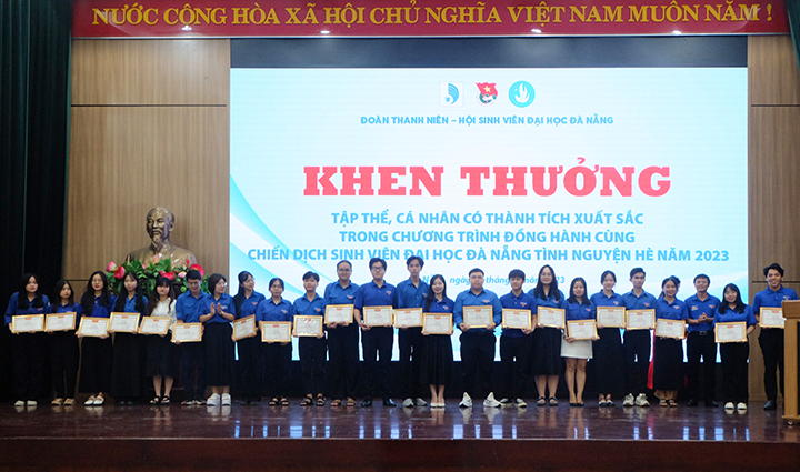 Dịp này, Đoàn Thanh niên – Hội sinh viên Đại học Đà Nẵng đã khen thưởng cho hơn 50 sinh viên có thành tích xuất sắc trong Chiến dịch Sinh viên tình nguyện hè năm 2023 và hơn 90 tập thể, cá nhân có thành tích xuất sắc trong công tác Đoàn, Hội và phong trào thanh niên, sinh viên năm 2022-2023.
