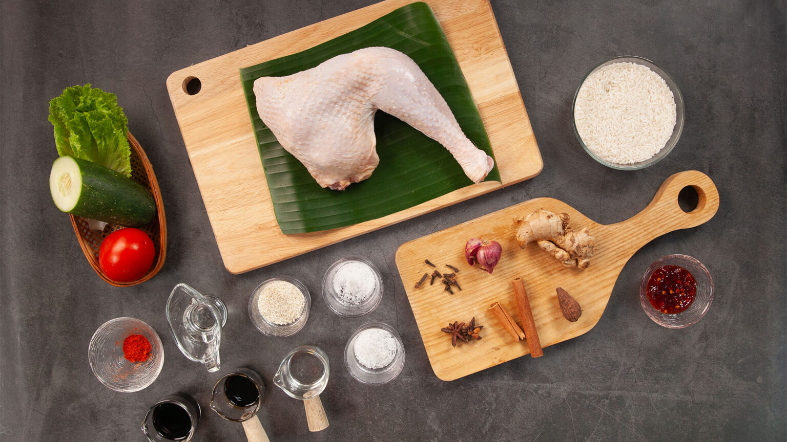 Để làm món cơm gà ngon nhất định cơm phải nấu bằng gạo tẻ. Đặc biệt phải là loại gạo tẻ thơm đặc trưng. Thịt gà phải chọn gà ta để thịt không bị quá mềm và bở. Cùng với đó là các loại gia vị như quế, hồi, thảo quả, đinh hương, gừng, hành tím…