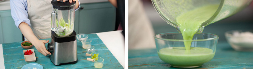 Muối ớt xanh: 50g ớt xiêm xanh, rau cải xanh, 4mc nước cốt chanh, 1/2mcf wasabi, 1mc muối, 3mc sữa đặc, 4mc đường.