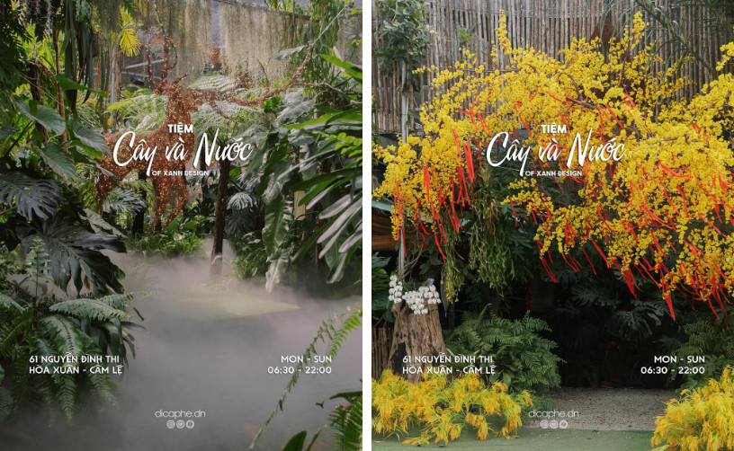 Mai vàng nở rộ giữa rừng mưa nhiệt đới. TIỆM CÂY VÀ NƯỚC đầu tiên mở ra phong trào thiết kế theo phong cách này – TIỆM CÂY VÀ NƯỚC là khu vườn nhiệt đới có hệ sinh thái đa dạng nhất Đà Nẵng. Từ hệ thống cây cối phong phú, đa tầng đến vô vàn loài động vật cùng sinh sống; đem đến một không gian trải nghiệm mới lạ và đầy thú vị. Tiệm đã mang không khí Xuân về vườn với hàng mai rực rỡ nổi bật ngay trước cổng. Dịp Tết này Tiệm sẽ hoạt động từ 6h30 đến tầm 18h (chỉ nghỉ ngày 29 và mồng 1), mọi người note lại để tiện ghé vườn chơi nhé.