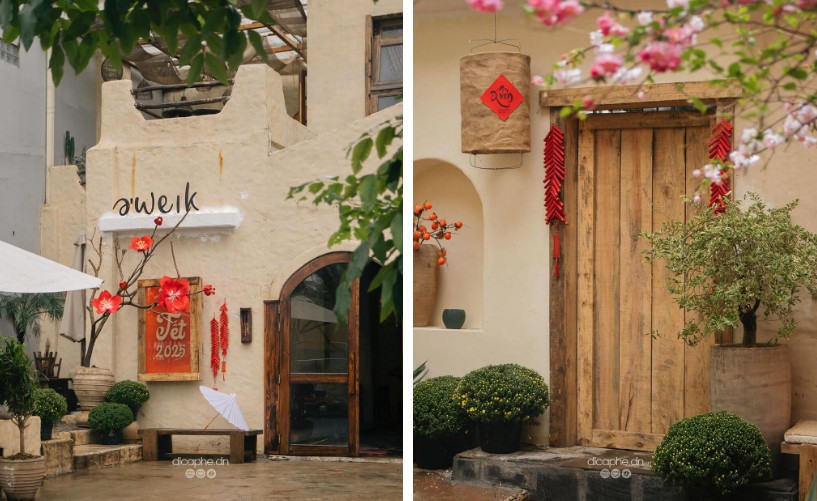 E’WEIK – chốn chill ven biển quen thuộc đã thay áo mới đón Xuân về. Mang những chất liệu truyền thống nhẹ nhàng, không quá cầu kỳ, kết hợp hài hoà với đường nét kiến trúc có sẵn và chất sáng tạo riêng – đem đến hiệu quả thẩm mỹ cao. Đợt nàyE’WEIK còn cho ra mắt một số dòng thức uống mới mang sắc đỏ may mắn như Đào Hồng Đài, Ổi Hồng Đài, Sữa Tươi Kem Dâu, Chanh Dây Hồng Đài, Trà Thảo Mộc,… với chất lượng ổn áp, hình thức bắt mắt. Quán sẽ hoạt động xuyên Tết, cùng nhau lưu giữ những khoảnh khắc chào Xuân nhé.