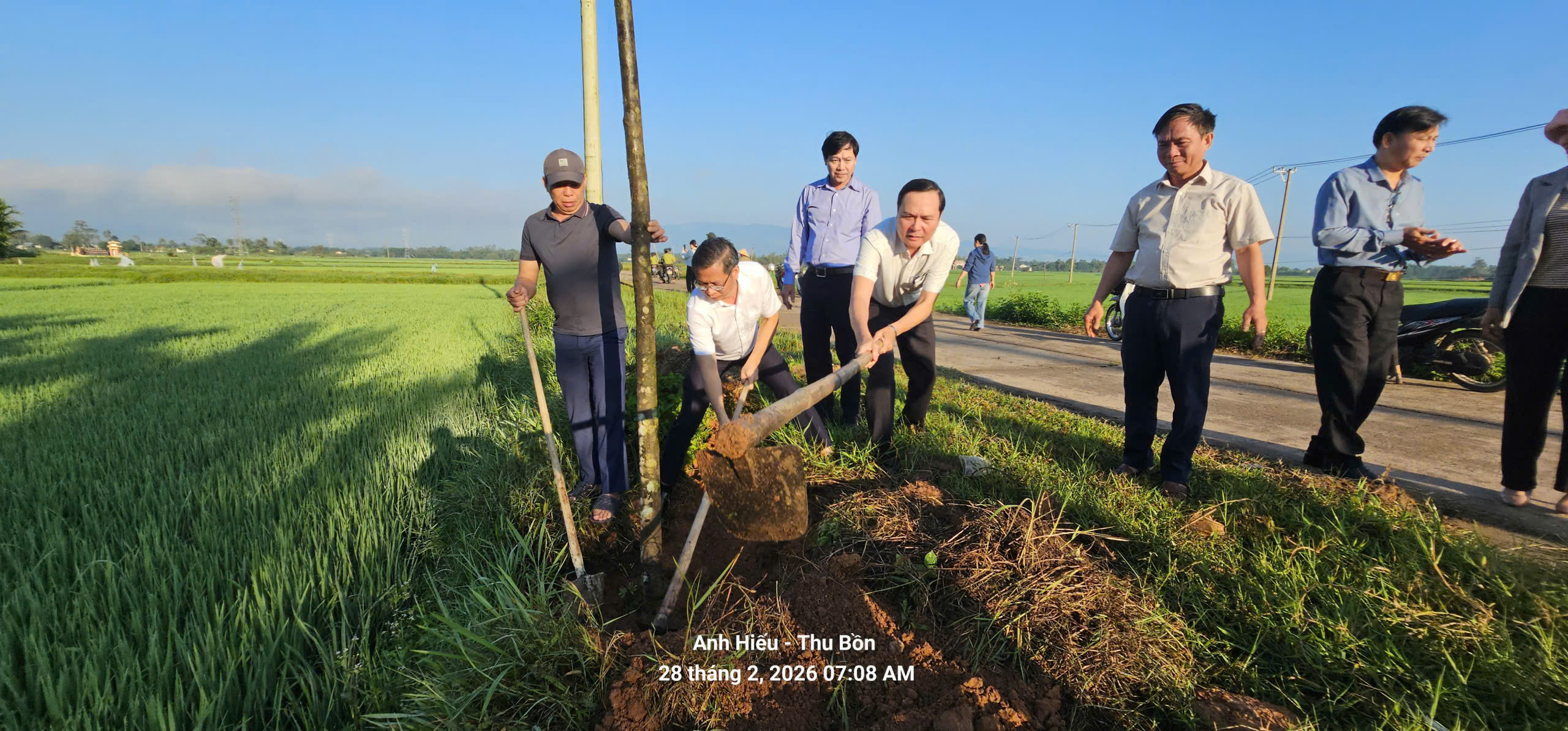 Ngay sau lễ phát động, các đồng chí lãnh đạo cùng bà con nhân dân đã trực tiếp ra quân trồng những cây xanh đầu tiên tại khu vực quy hoạch của thôn Vĩnh Trinh, tạo nên khí thế thi đua sôi nổi, hứa hẹn một năm mới Bính Ngọ nhiều thắng lợi và ngập tràn sắc xuân.