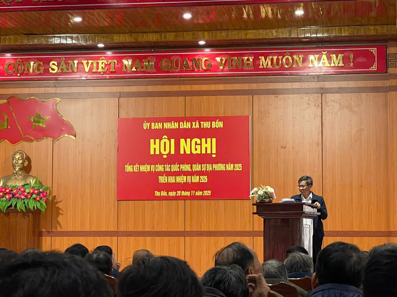 Chiều ngày 20/11/2025, UBND xã Thu Bồn tổ chức Hội nghị tổng kết nhiệm vụ quốc phòng, quân sự địa phương năm 2025 và triển khai nhiệm vụ năm 2026.