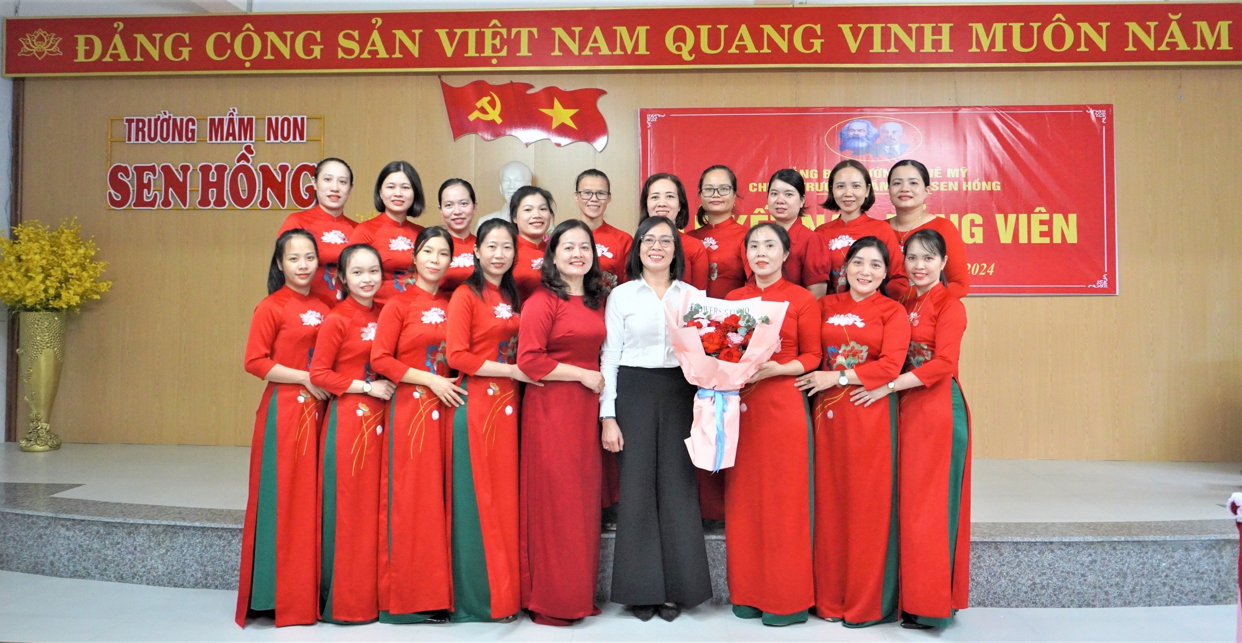 Bí thư Chi bộ Mầm non Sen Hồng Vũ Thị Thanh Vinh cho biết: Công tác phát triển Đảng ở Chi bộ Sen Hồng luôn song hành với củng cố tổ chức đảng. Cùng với đó là chú trọng giáo dục rèn luyện để mỗi đảng viên là tấm gương cho quần chúng ngưỡng mộ, noi theo, nỗ lực phấn đấu đứng vào hàng ngũ của Đảng Cộng sản Việt Nam. Chi bộ làm tốt công tác tự phê bình và phê bình trên tinh thần góp ý xây dựng để đảng viên, đồng chí, đồng nghiệp mình phát huy ưu điểm, sửa chữa khuyết điểm. Đoàn kết xây dựng Chi bộ, trường học vững mạnh, hoàn thành tốt nhiệm vụ được giao, nâng cao chất lượng chăm sóc, giáo dục trẻ đảm bảo các tiêu chí trí, thể, mỹ.