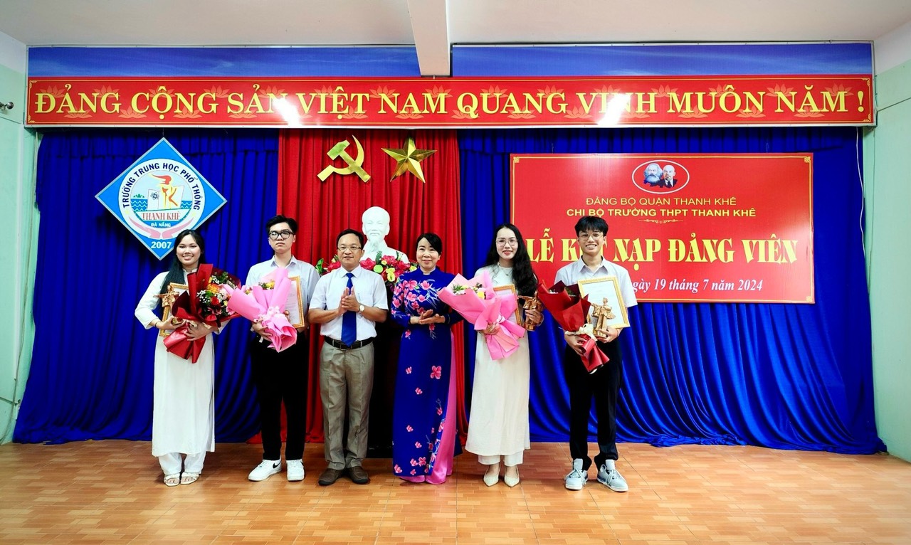 (Dangbodanang.vn) - Chiều ngày 19/7, Chi bộ Trường Trung học phổ thông Thanh Khê tổ chức Lễ kết nạp đảng viên cho 04 quần chúng ưu tú là đoàn viên thanh niên, học sinh lớp 12. Đây là lần đầu tiên Ban Thường vụ Quận ủy Thanh Khê quyết định kết nạp Đảng cho các em học sinh ưu tú trong trường học trên địa bàn quận.